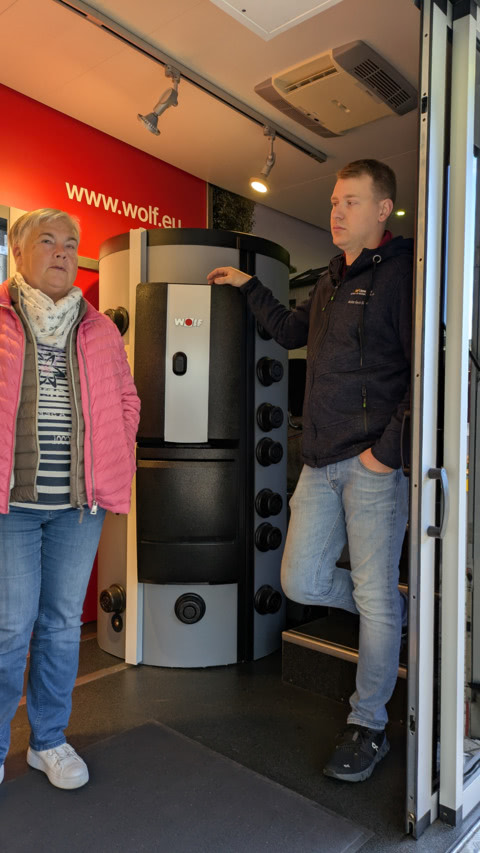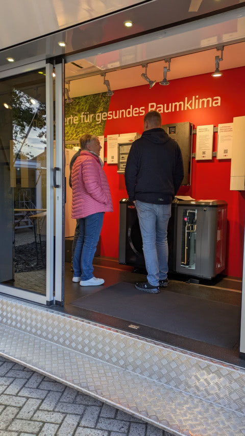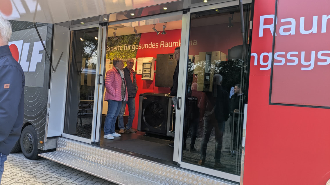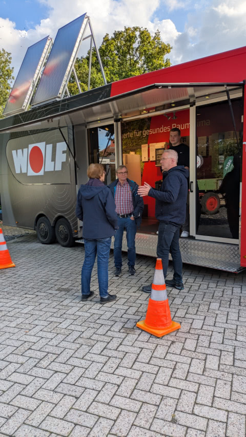 In kleiner Runde wurden bei einer Tasse Kaffee Fragen zum Thema Wärmepumpen von Albert Lienemann beantwortet. Die Besucher konnten so einen Überblick über die Funktionsweisen der Wärmepumpen, über Vorzüge im Vergleich zu anderen Heizarten und über verschiedenen Förderungen und Kosten erhalten.